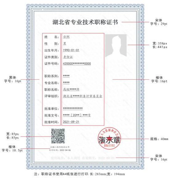 職稱電子證書規格示例