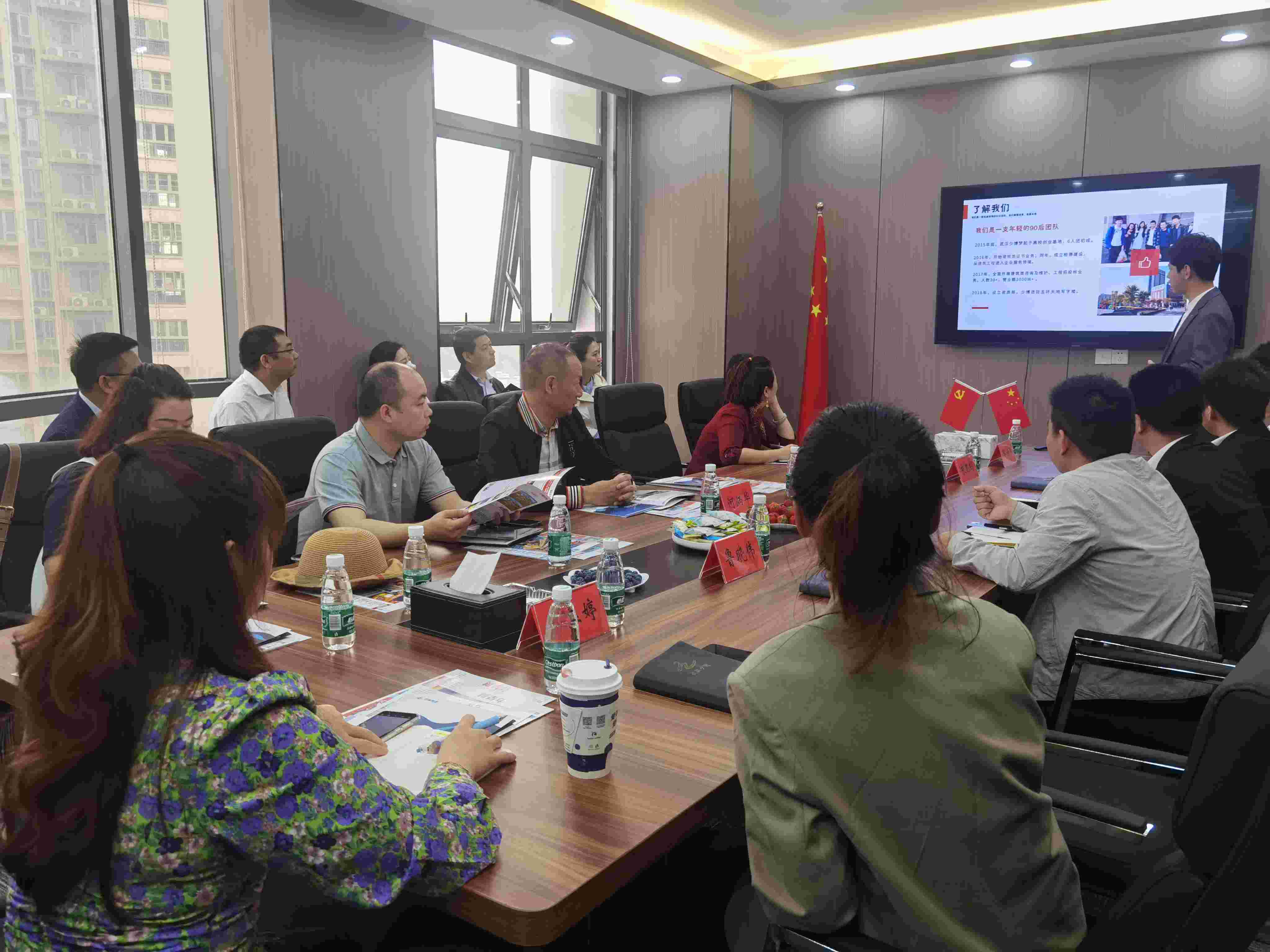 5月12日上午,本月輪值會長武漢市白龍馬系統工程有限責任公司董事長何炳華、秘書處主任李彥菁,與眾會員代表一起走訪會員單位少博集團有限公司,集團總經理常鵬、創發部經理朱乾、品牌總監魯曉偉熱情接待了走訪隊伍。