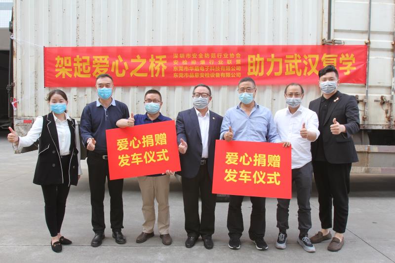 4月17日下午,由深圳市安全防范協會和我會聯合組織,由東莞市華盾電子科技有限公司、東莞市品意安檢設備有限公司提供的價值兩百萬元人民幣的一百臺測溫安檢門,順利到達武漢,向武漢市教育局進行了愛心捐贈,助力武漢復課復學。