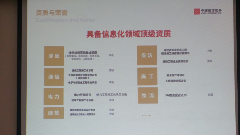 中國通信服務湖北公司(工商注冊:湖北省信產通信服務有限公司維護分公司)是中國通信服務在湖北行政區域內設立的全資子公司,是湖北運營最早、規模最大、業務最全、資質最高的通信服務提供商,主要從事咨詢設計、建設與監理、網絡維護、運營外包和互聯網增值等業務。信息化產品齊全,包括:新型智慧城市、新型智慧交通、云總包+云服務,智慧園區、物聯網、網信安全、智慧賽事、智慧水務、智慧教育、智慧政法、智慧農業、智慧建筑、區塊鏈、大應急、智慧安防、智慧醫療、智慧社區、智慧硬件。