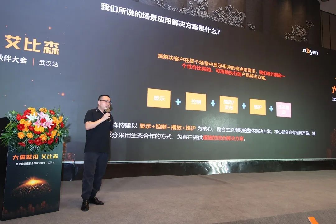 大會現場,艾比森戰略營銷體系及中國市場相關負責人從品牌與企業文化、戰略選擇、產品技術、場景解決方案等多個維度,深入淺出地為現場嘉賓展現最真實、最全面的艾比森形象,進一步增進互信、凝聚共識、深化合作。