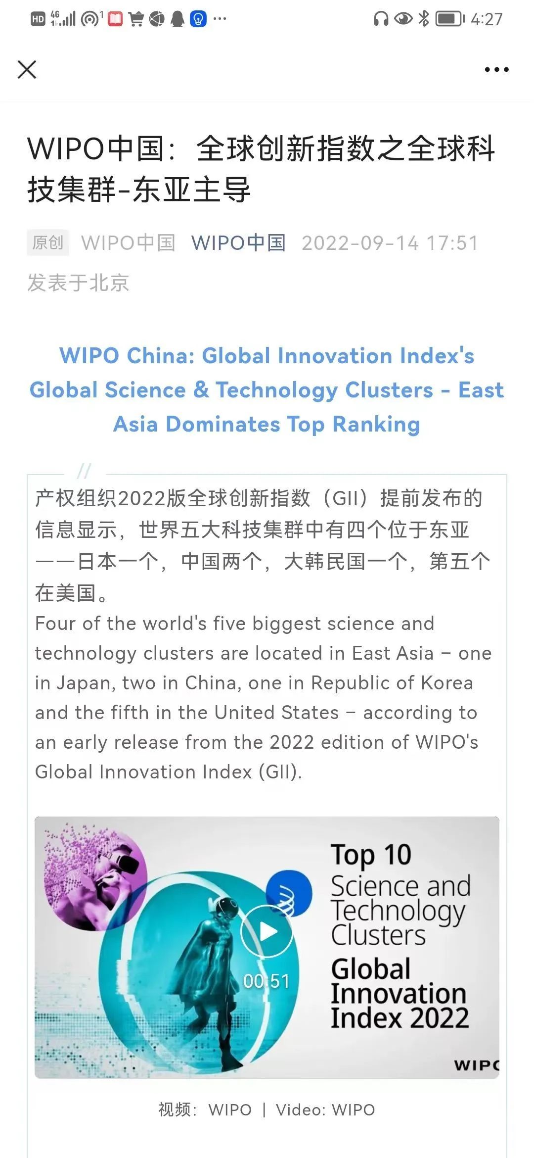 世界知識(shí)產(chǎn)權(quán)組織中國(guó)辦事處官微截圖
