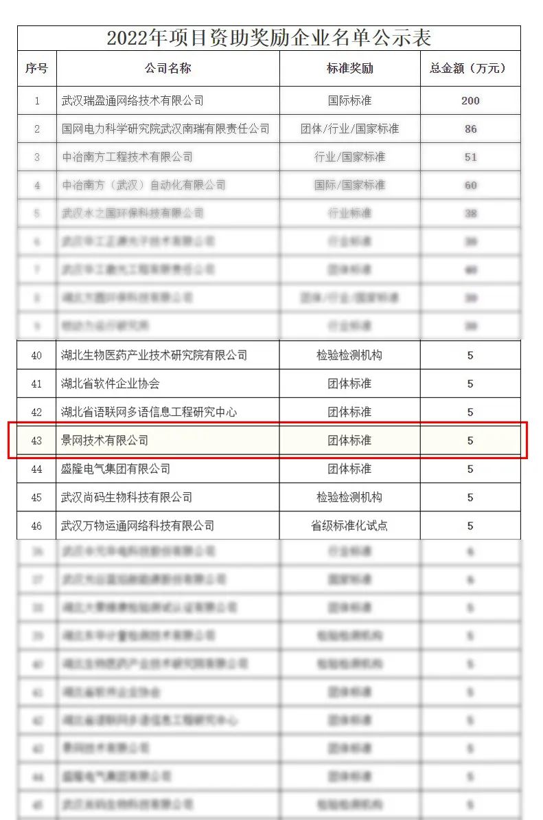 ? ? ? ? 近日,武漢東湖高新區將2022年度技術標準等項目獎勵資金擬撥付企業名單進行了公示,景網技術有限公司主導制定協會兩個團體標準《公共安全防范視頻監控系統運維服務規范》(T/WHAF 001-2019)與《基于云計算的公共安全視頻監控平臺服務規范》(T/WHAF 002-2020),榮幸上榜。