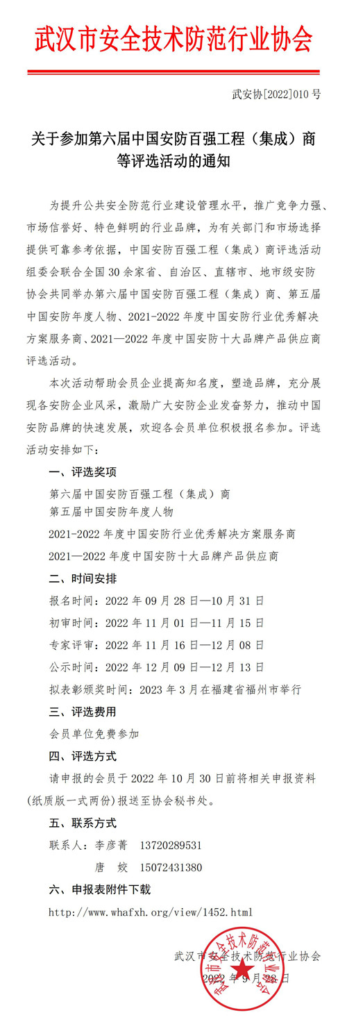 關于參加第六屆中國安防百強工程(集成)商等評選活動的通知