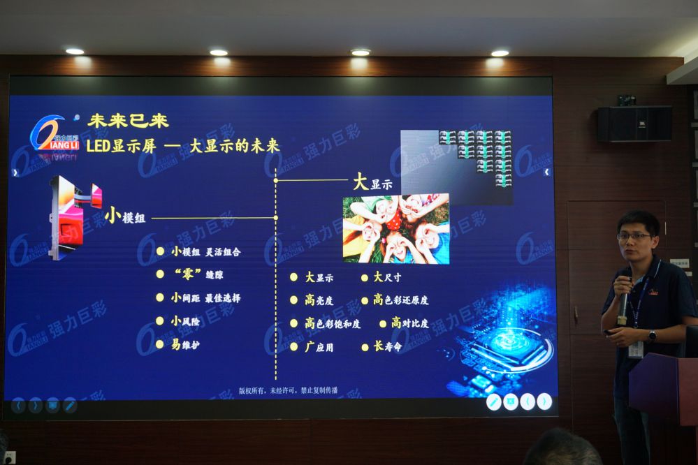 隨后,強力巨彩從企業(yè)文化、公司實力、產(chǎn)品優(yōu)勢等方面進行了全面解讀。強力巨彩是行業(yè)內(nèi)產(chǎn)品系列齊全、產(chǎn)品應用領(lǐng)域廣泛的企業(yè)之一,目前公司研發(fā)的產(chǎn)品已經(jīng)覆蓋重點的細分行業(yè)應用領(lǐng)域市場,尤其是在指揮中心、監(jiān)控室、高端會議室等領(lǐng)域顯示屏應用已經(jīng)越來越廣泛。