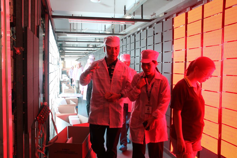 實驗室、自動化生產(chǎn)車間、老化車間,大家一邊走一邊聽講解員的介紹,近距離觀摩室內(nèi)小間距及戶外LED顯示屏生產(chǎn)流程,深入了解了強力巨彩智能制造體系和品質(zhì)管控體系。