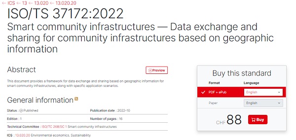 2022年10月24日,根據(jù)國際標準化組織網(wǎng)站發(fā)布的信息,《ISO 37172:2022 智慧城市基礎設施——基于地理信息的城市基礎設施數(shù)據(jù)交換與共享》成功發(fā)布。