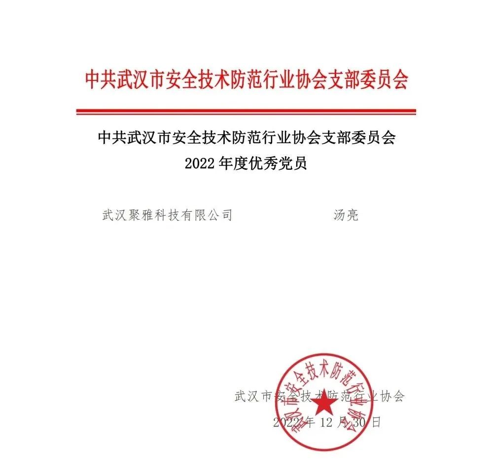一名黨員,就是一面旗幟。為表彰先進(jìn)、爭(zhēng)先創(chuàng)優(yōu),中共武漢市安全技術(shù)防范行業(yè)協(xié)會(huì)支部委員會(huì)決定,授予湯亮同志“優(yōu)秀黨員稱號(hào)”,樹(shù)立優(yōu)秀黨員榜樣標(biāo)桿,激發(fā)黨員工作精氣神。激勵(lì)廣大黨員要不忘初心,牢記使命,以躬身入局、擔(dān)當(dāng)作為。