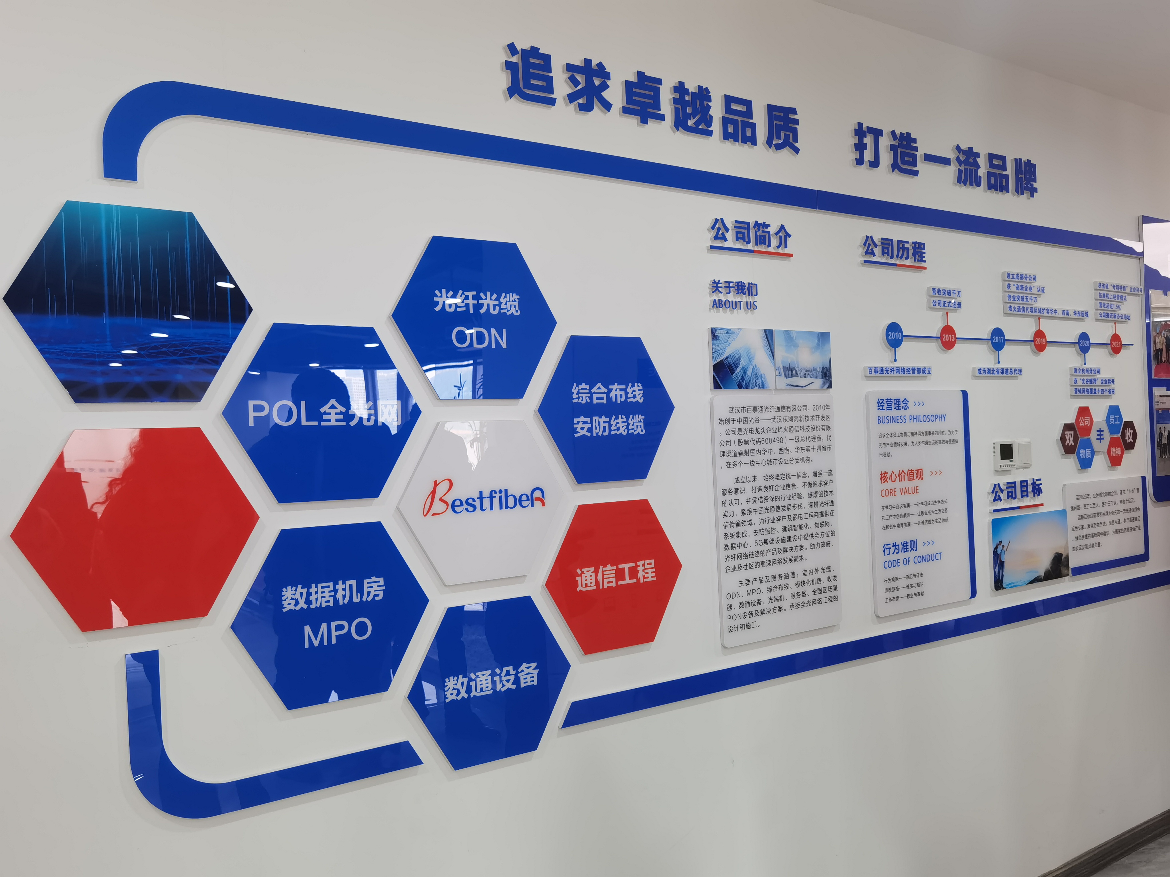 武漢市百事通光纖通信有限公司總經(jīng)理黃登紅介紹了公司情況。百事通成立于2010年,長期致力于為弱電工程商和行業(yè)客戶在智慧城市、建筑智能化、系統(tǒng)集成、安防監(jiān)控等領(lǐng)域提供優(yōu)質(zhì)的通信鏈路產(chǎn)品和系統(tǒng)解決方案。產(chǎn)品和服務(wù)包括光纖光纜、綜合布線、弱電線纜、POL全光網(wǎng)絡(luò)和數(shù)據(jù)中心及網(wǎng)絡(luò)設(shè)備,承接全光網(wǎng)絡(luò)工程。目前為烽火通信公司的國內(nèi)行業(yè)網(wǎng)營銷中心大區(qū)總代理(非運營商渠道市場),在成都和杭州設(shè)有分公司。業(yè)務(wù)區(qū)域范圍涵蓋華中、西南、華東十四省市工程商和分銷商客戶。
