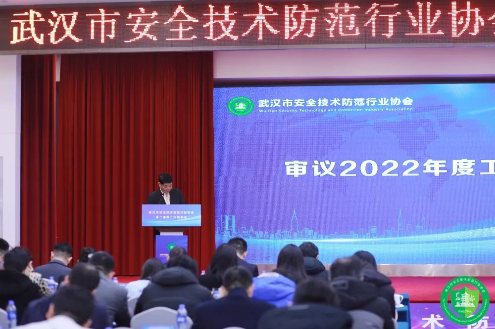 2023年2月23日下午,協(xié)會(huì)第二屆第二次理事會(huì)會(huì)議在保利大酒店順利召開,63家理事會(huì)單位負(fù)責(zé)人參加了會(huì)議,會(huì)議由秘書長陳虎主持。武漢市公安局科信處二級(jí)調(diào)研員、行管辦主任徐繼弘受邀出席會(huì)議。