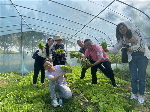 游戲后,大家一起動(dòng)身前往黃陂農(nóng)業(yè)基地,體驗(yàn)農(nóng)村的爐灶,自己生火燒柴,自己田里摘青菜,園子里捉土雞,大家雖不熟練,齊心協(xié)力燒出來(lái)的味道卻有一種獨(dú)特的清淡香甜,一起在憶苦思甜飯中,于舌尖之中找尋那抹紅色的歲月畫(huà)卷。