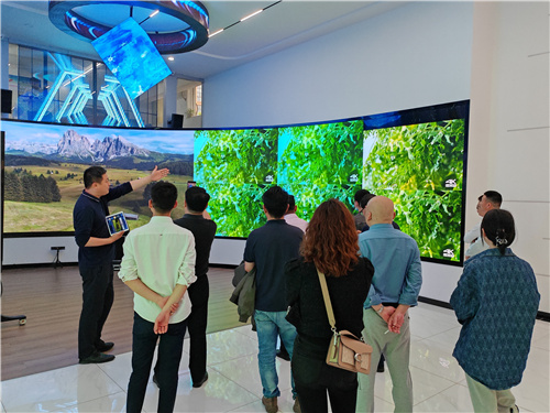 ? ? ? 隨后,大家赴會員單位湖北旭峰偉業(yè)科技有限公司參觀交流。旭峰是京東方LED顯示屏省級品牌運營商,2023年48天舉辦產(chǎn)品推介會17場。湖北旭峰偉業(yè)科技有限公司總經(jīng)理惠鴻旭帶領(lǐng)大家參觀了最新的LED屏展示廳,裝修升級后的展廳展示空間更直觀,展示的產(chǎn)品更全更新。