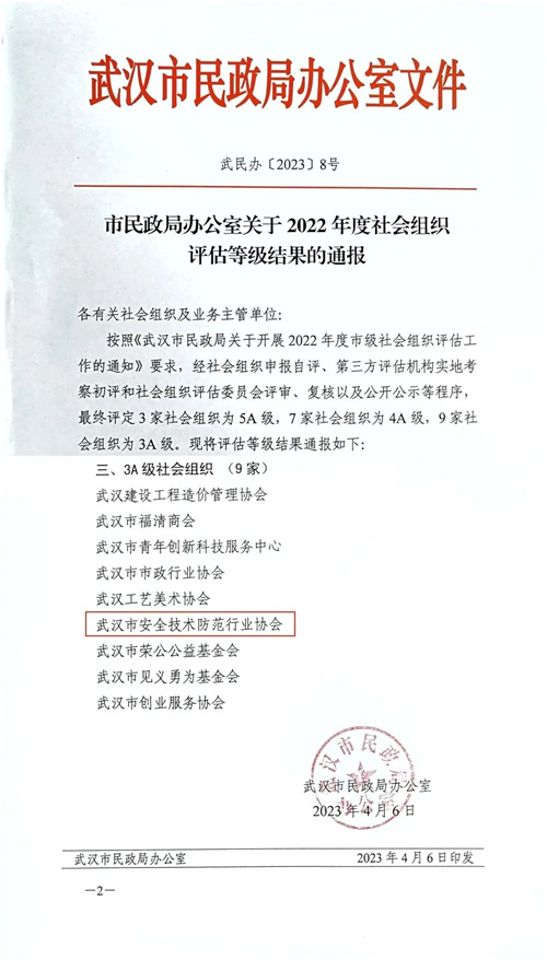 協會自成立以來,在業務主管單位武漢市公安局的悉心指導下,以服務至上、嚴謹認真為宗旨,不斷加強自身建設。感謝全體會員同心協力、砥礪前行,此次榮獲3A是協會發展道路上的一個重要里程碑,我們將倍加珍惜來之不易的榮譽,持續改進自身工作,對照社會組織高質量發展的要求,在更加規范的軌道上開展工作。