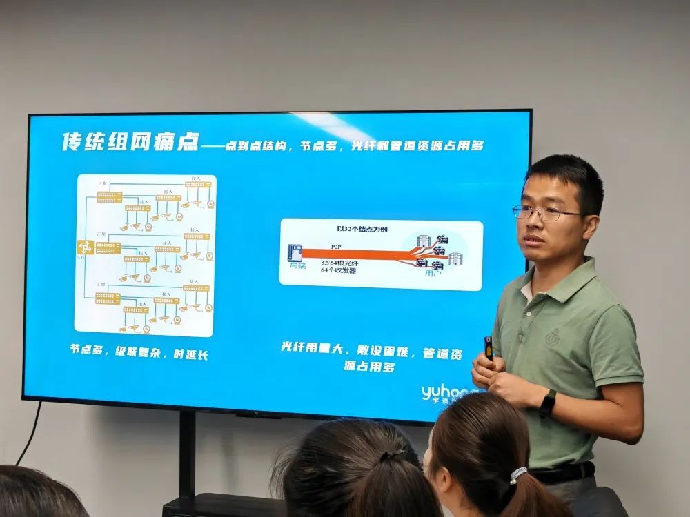 光產線總監黃振華表示宇洪通信為行業和用戶提供全光纖局域網絡解決方案,實現千兆超寬接入的同時,綠色無源、可靠安全、快速部署、高效運維,為網絡信號傳輸開展保駕護航,構建政府、教育、醫療保健、工業園區等領域智慧化場景。針對全光網產品系列、產品參數、全光網方案技術特點、全光網方案優勢、行業解決方案、成功案例等內容進行講解介紹。