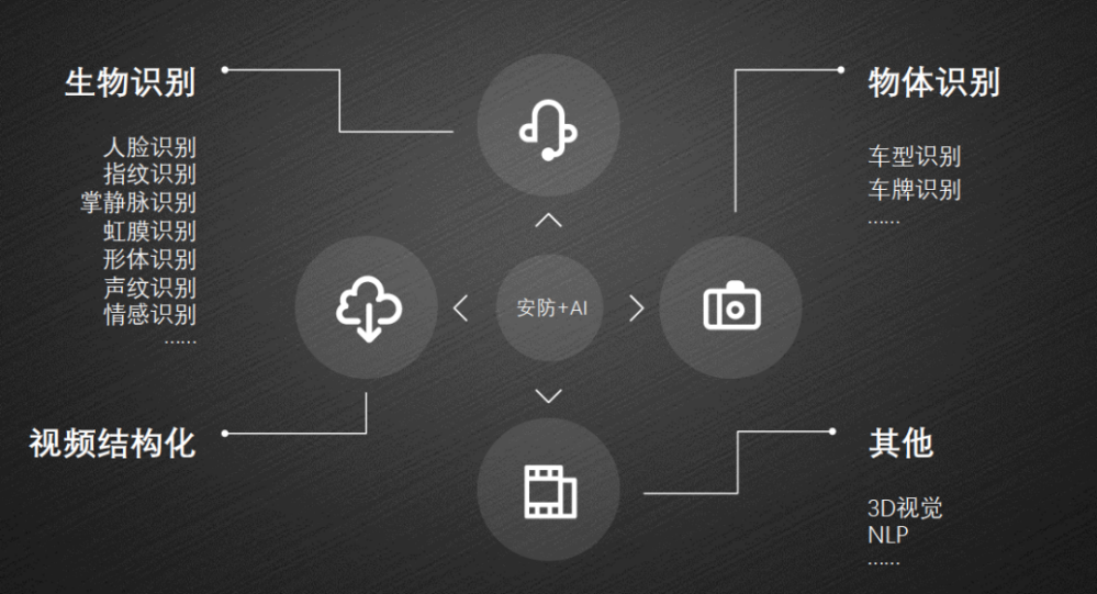從大的維度來說,AI在安防行業的應用方向主要有四個:生物識別、物體識別、視頻結構化和其他小類。
