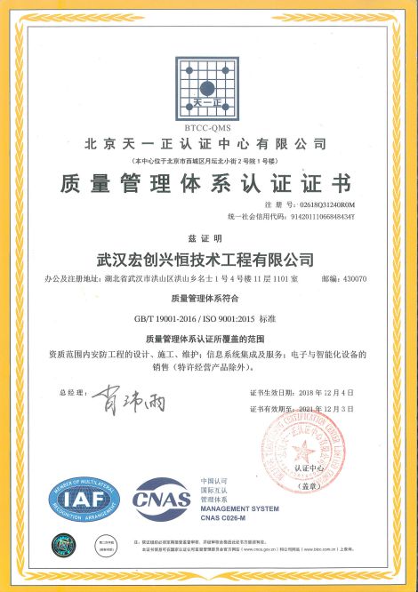 質量管理體系認證證書