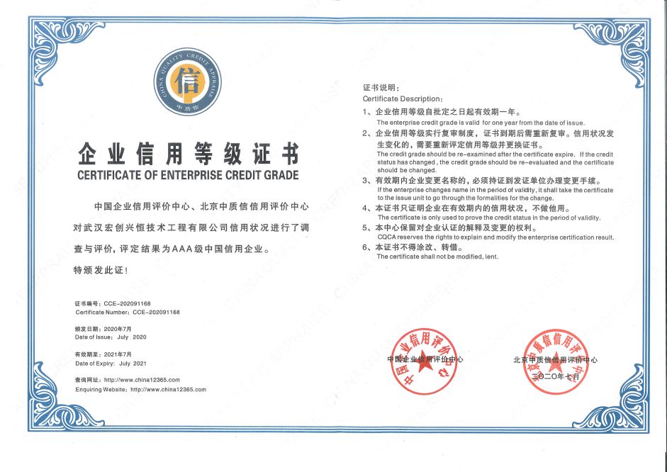 榮譽:湖北省守合同重信用企業、AAA級信用企業