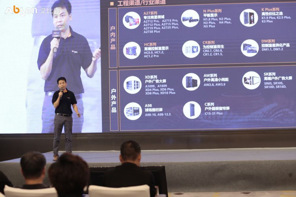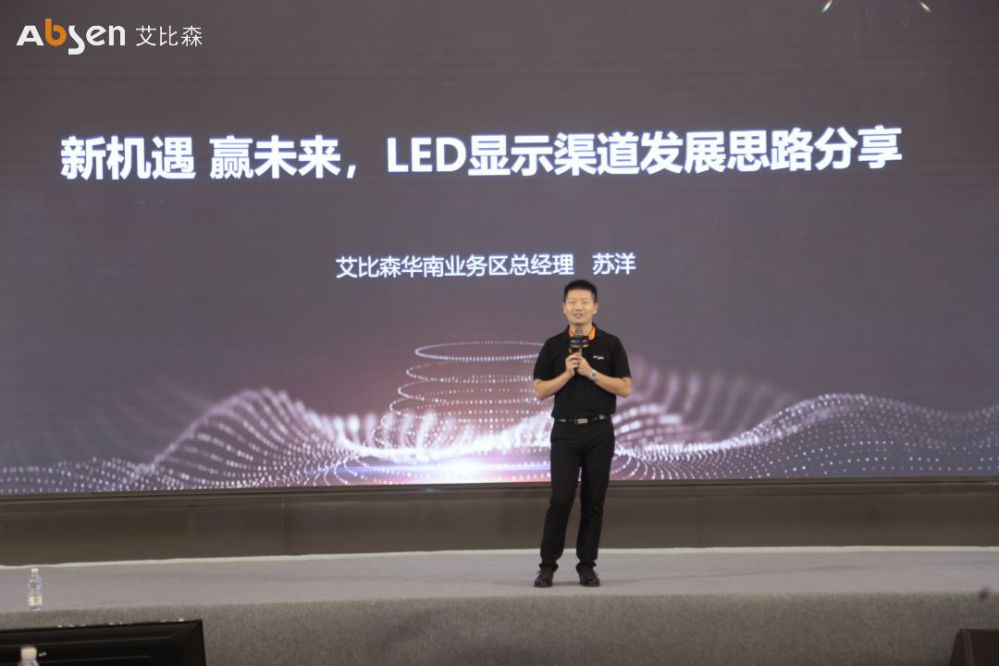 活動下半場,艾比森華南業務區總經理蘇洋上臺,他提到了艾比森“讓時間見證至真品質”這個觀念,從艾比森中國區渠道建設思路、LED顯示屏防火安全及應用建議、經銷渠道發展及品牌整機應用優勢這三個方面介紹了艾比森渠道產品及政策。