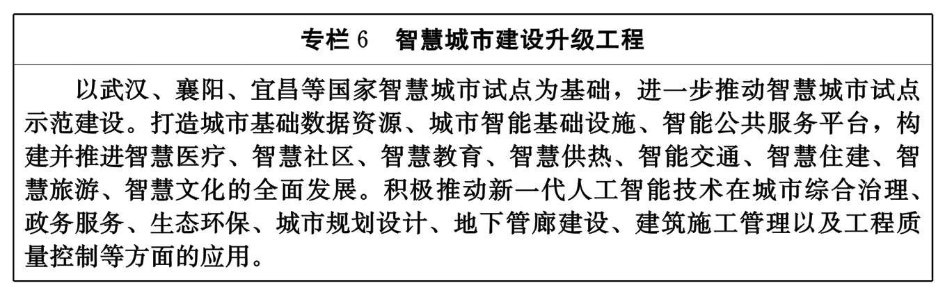 5.培育智能建造產品。發揮湖北在道路、橋隧等建筑領域的領先優勢,加快推進建筑信息模型(BIM)、地理信息系統(GIS)等重點技術的突破與應用,推動創新型產品與服務的開發,加快發展智能建筑和智能城市基礎設施。加強建筑領域先進智能傳感產品與全過程信息管理服務的應用推廣,鼓勵研發可以感知環境、感知狀態,具有自適應、自修復功能的智能型建造裝配產品,加快可遠程操控的智能建造設備產業化,加快智能建造、綠色建造、安全建造的實現,為全生命周期管理提供支持。