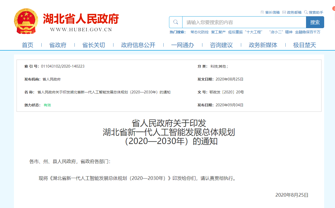 湖北省新一代人工智能發展總體規劃(2020—2030年)的通知