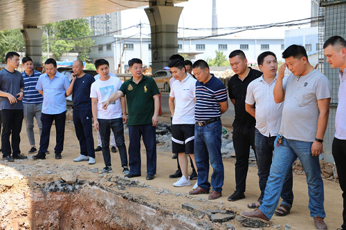座談會結束后,大家前往景網公司軍運會項目工地“光谷大道管線”項目部參觀,并為景網一線施工人員送去清涼慰問。烈日炎炎,驕陽似火,景網人始終堅守在自己的崗位。秘書長陳虎叮囑大家高溫作業時要注意防暑,提前做好防護措施,嚴格安全生產,生產必須安全。在場的復轉軍人對他們不畏高溫、堅守崗位的辛勤工作表示感謝與欽佩。