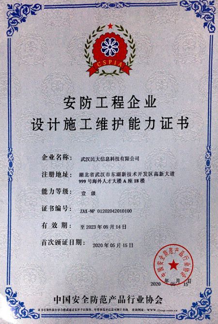 安防工程企業(yè)設(shè)計(jì)施工維護(hù)能力一級(jí)證書(shū)