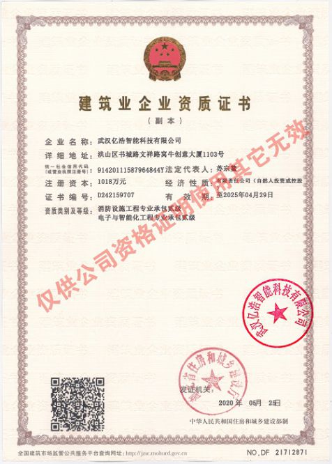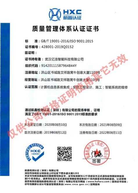 武漢億浩智能科技是一家專業從事計算機系統集成,建筑智能化系統工程設計、研發、集成、安裝為一體的高科技企業。公司始堅持終 “質量為本、科學發展” 的經營理念。致力于為用戶提供全面、專業、便捷的系統管理解方案、技術支持及售后服務。通過數年的發展,公司逐步建立起了一套適合自身發展需要的管理體系,并通過ISO9001質量體系認證、安防工程企業設計施工維護能力證書。取得了建筑智能化、消防工程、機電安裝工程等專業承包資質。