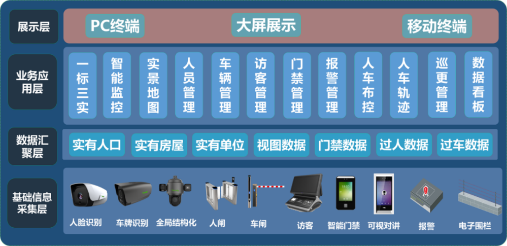 天地偉業(yè)智慧社區(qū)系統(tǒng)解決方案以安全社區(qū)、智能應(yīng)用、安全防范、聯(lián)網(wǎng)管理為建設(shè)目標(biāo),以社區(qū)微腦為核心,集成“一標(biāo)三實(shí)”、智能監(jiān)控、周界防范、人臉識(shí)別比對(duì)、車閘管理、人閘管理、智能門禁、可視化對(duì)講、訪客管理、車輛管理、電動(dòng)車乘梯、煙霧監(jiān)測(cè)、巡更等系統(tǒng)管理,具備開(kāi)放接口,可全面兼容主流廠商設(shè)備,實(shí)現(xiàn)社區(qū)的共建公治共享。