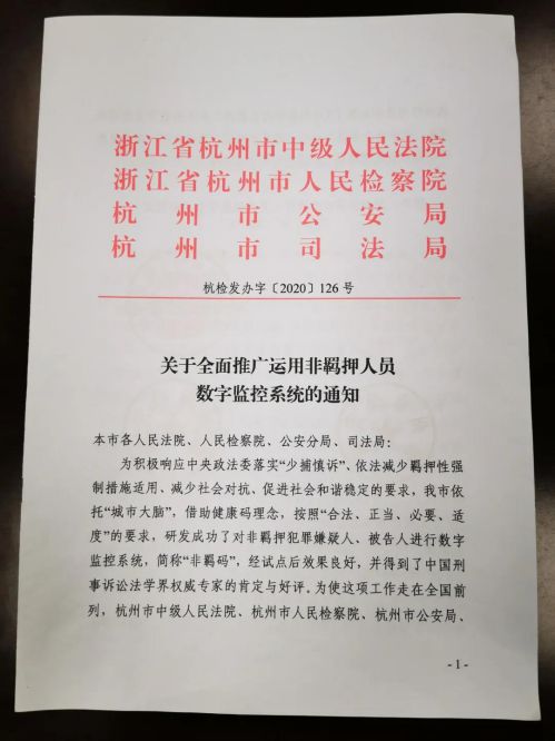 9月30日,杭州市公安局、市檢察院、市中級人民法院、市司法局聯合會簽《對刑事訴訟非羈押人員開展數字監控的規定》(以下簡稱《規定》),“非羈碼”APP正式在全市上線運用。這是杭州司法機關聯動助推市域社會治理現代化的體現。