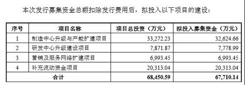 ? ? ? ? 擬將此次募集資金用于制造中心升級與產能擴建項目、研發(fā)中心升級建設項目、營銷及服務網絡擴建項目等。