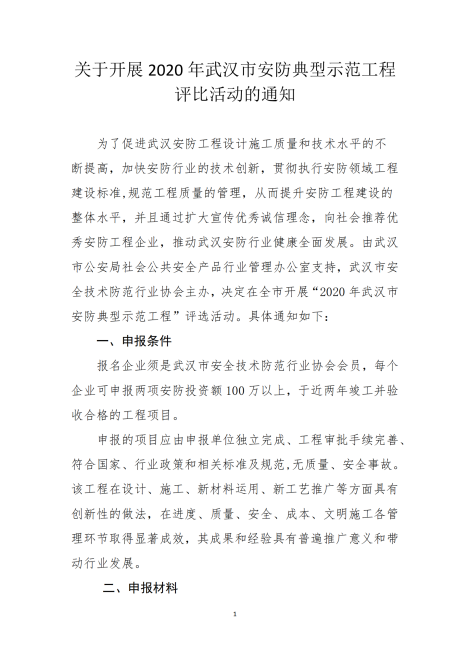 關于開展2020年武漢市安防典型示范工程評比活動的通知