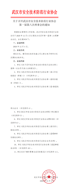 關于召開武漢市安全技術防范行業協會第一屆第八次理事會的通知