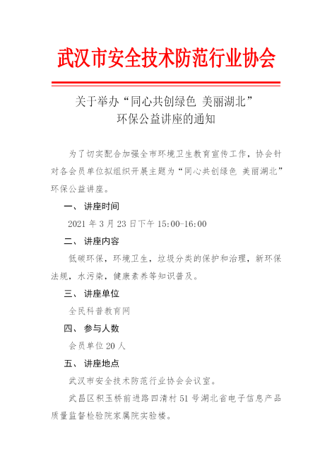 關于舉辦“同心共創綠色 美麗湖北” 環保公益講座的通知