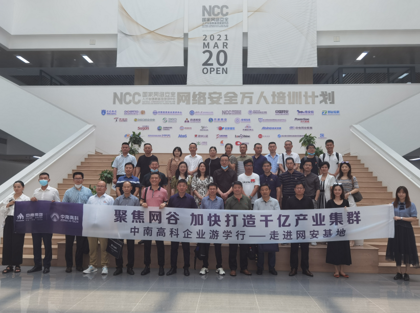 2021年6月25日上午,由本月輪值會長副會長單位武漢網信安全技術股份有限公司副總劉成奎、協會秘書長陳虎帶隊,組織了14家會員單位赴國家網絡安全人才與創新基地參觀考察。本次考察活動由武漢臨空港經開區高新技術產業建設管理辦公室、武漢臨空港經開區現代服務業管理辦公室主辦,由武漢市安全技術防范行業協會、中南高科產業集團聯合承辦。