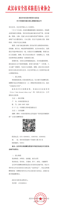 武漢市安全技術防范行業協會 關于河南防汛救災愛心募捐的倡議書