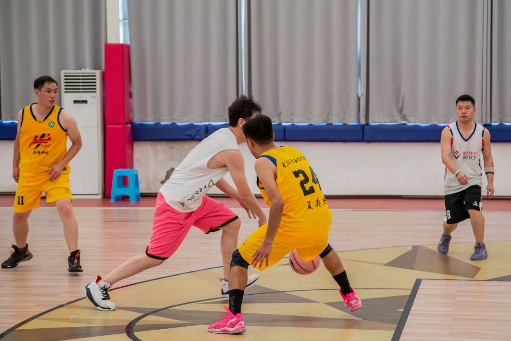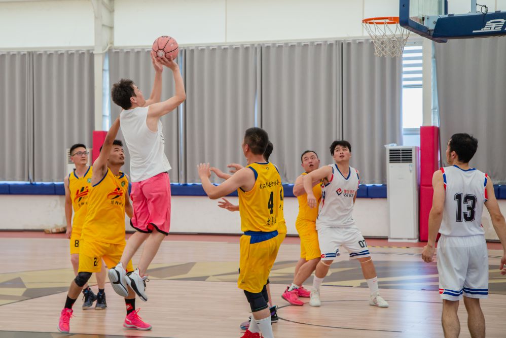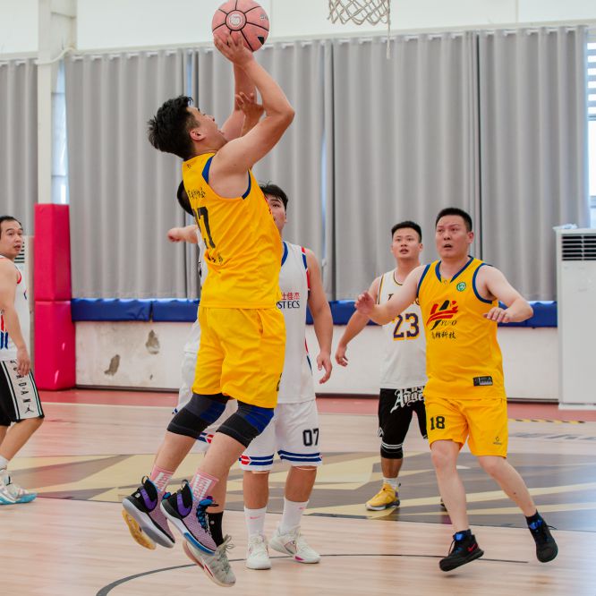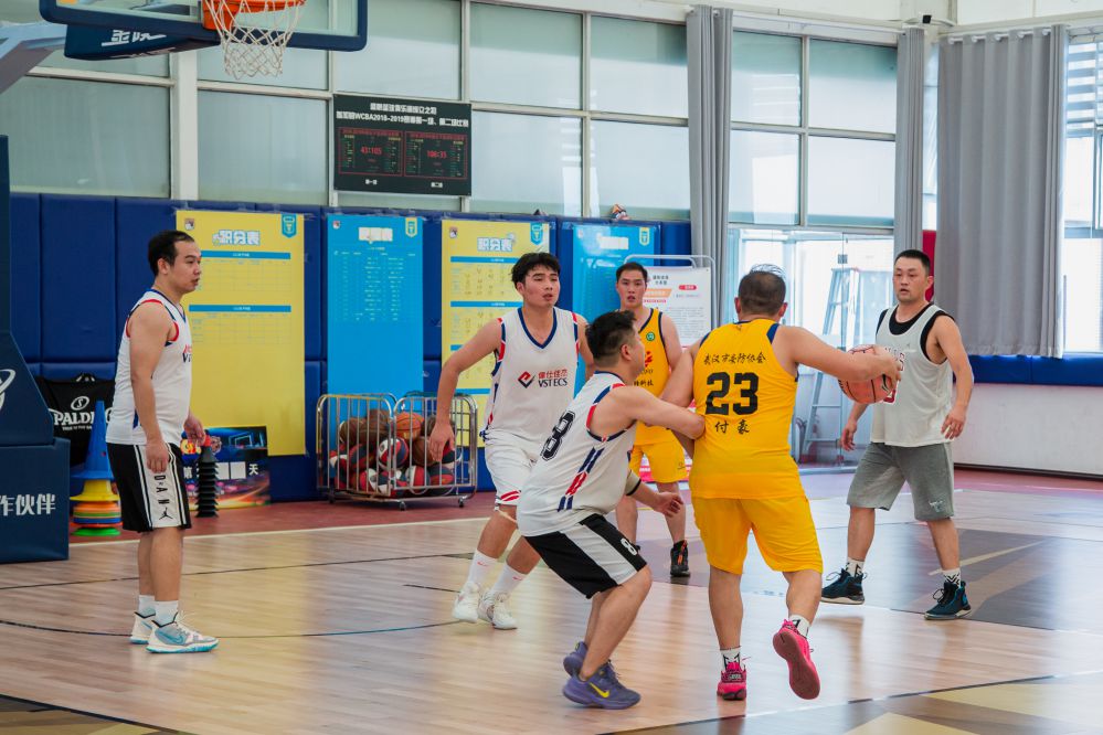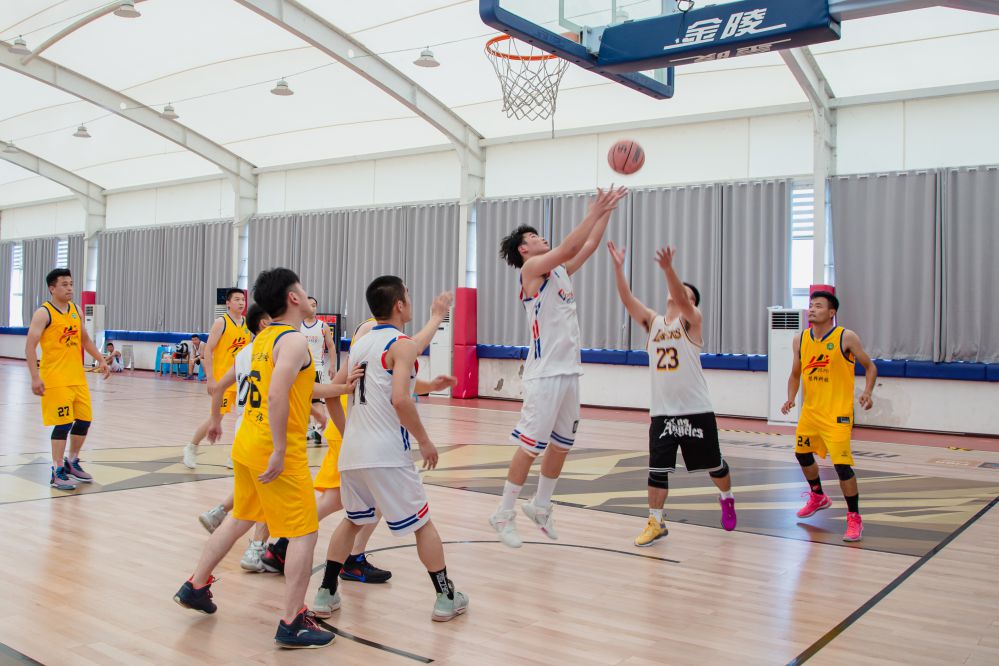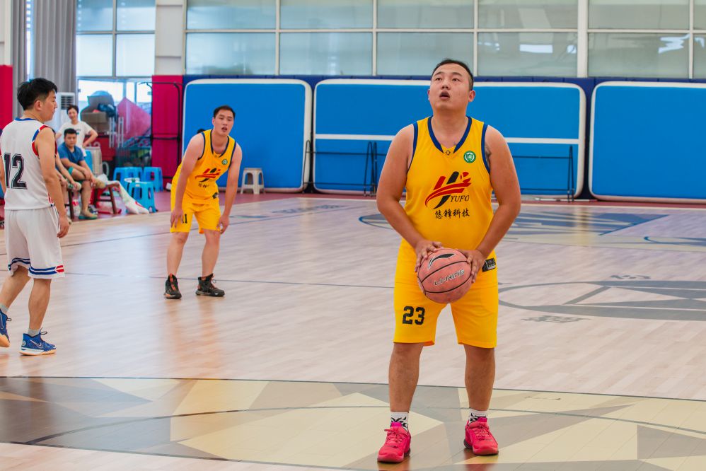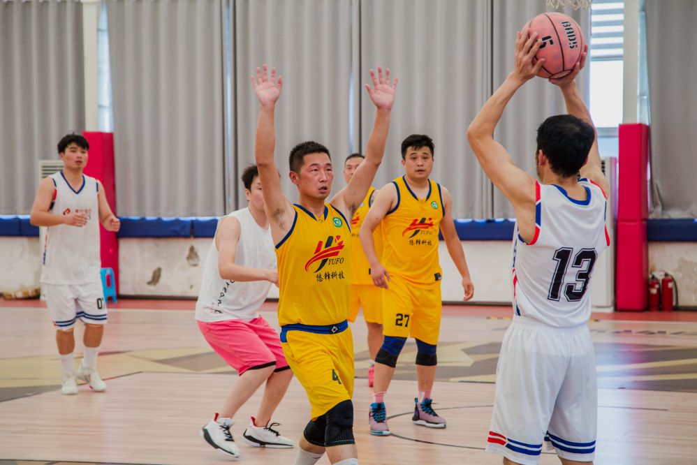 高溫酷暑,也阻擋不了大家參與的熱情。隨著裁判員的一聲哨響,比賽正式拉開帷幕,身著黃色球衣的“悠鋒科技”隊(duì)從一上場(chǎng)便表現(xiàn)出了較強(qiáng)的氣勢(shì),他們憑借著隊(duì)友間的默契在場(chǎng)上發(fā)起一輪輪攻勢(shì),運(yùn)球、傳球、投籃、防守多點(diǎn)開花氣勢(shì)如虹。身著白色球衣的偉仕佳杰隊(duì)也毫不示弱,他們很快便根據(jù)場(chǎng)上形勢(shì)調(diào)整了技戰(zhàn)術(shù),通過加強(qiáng)拼搶,增強(qiáng)傳導(dǎo),緊咬比分,步步逼近。