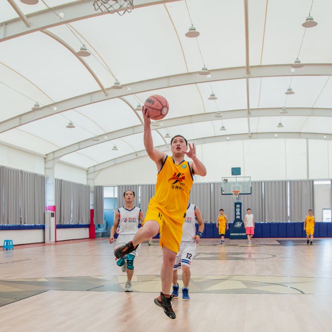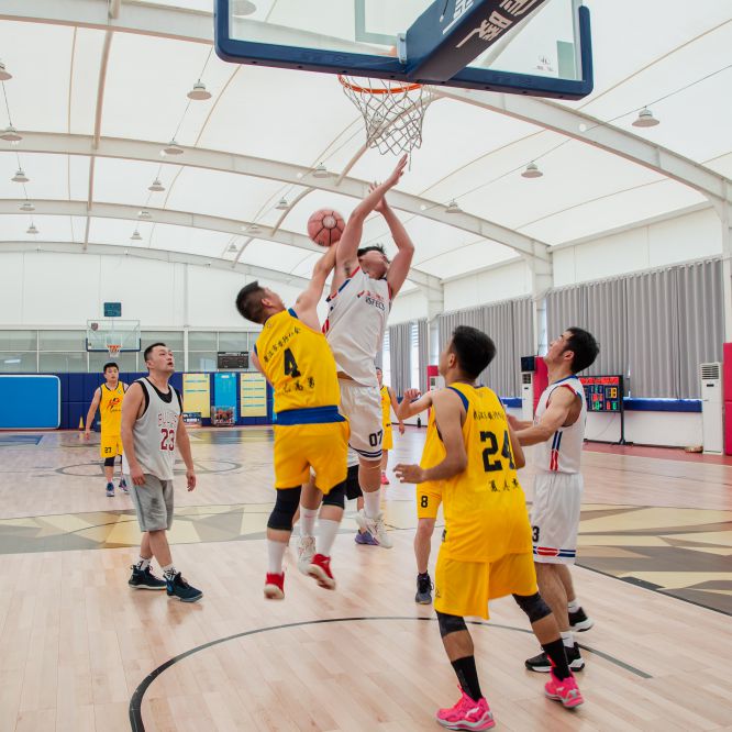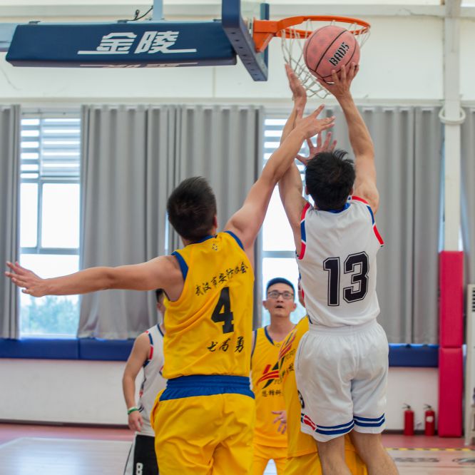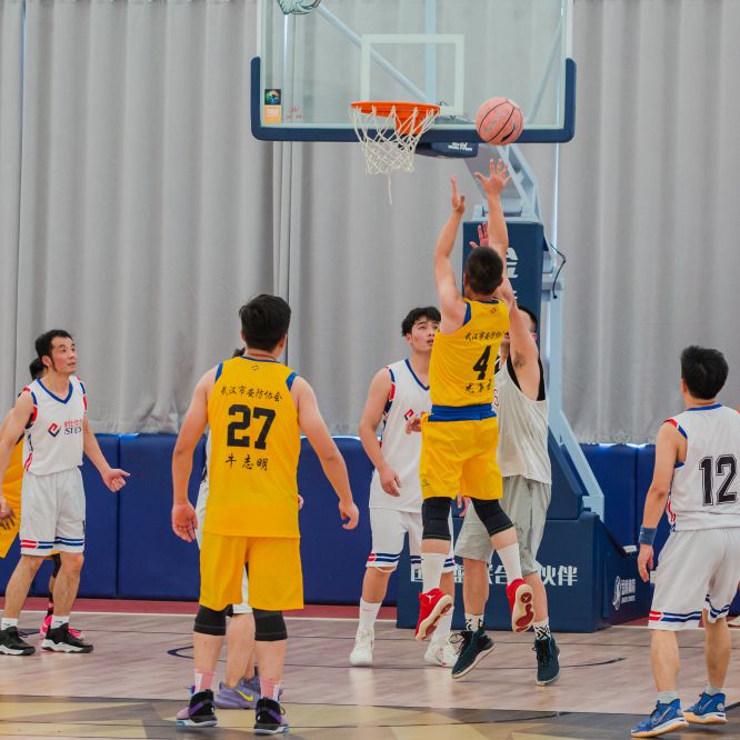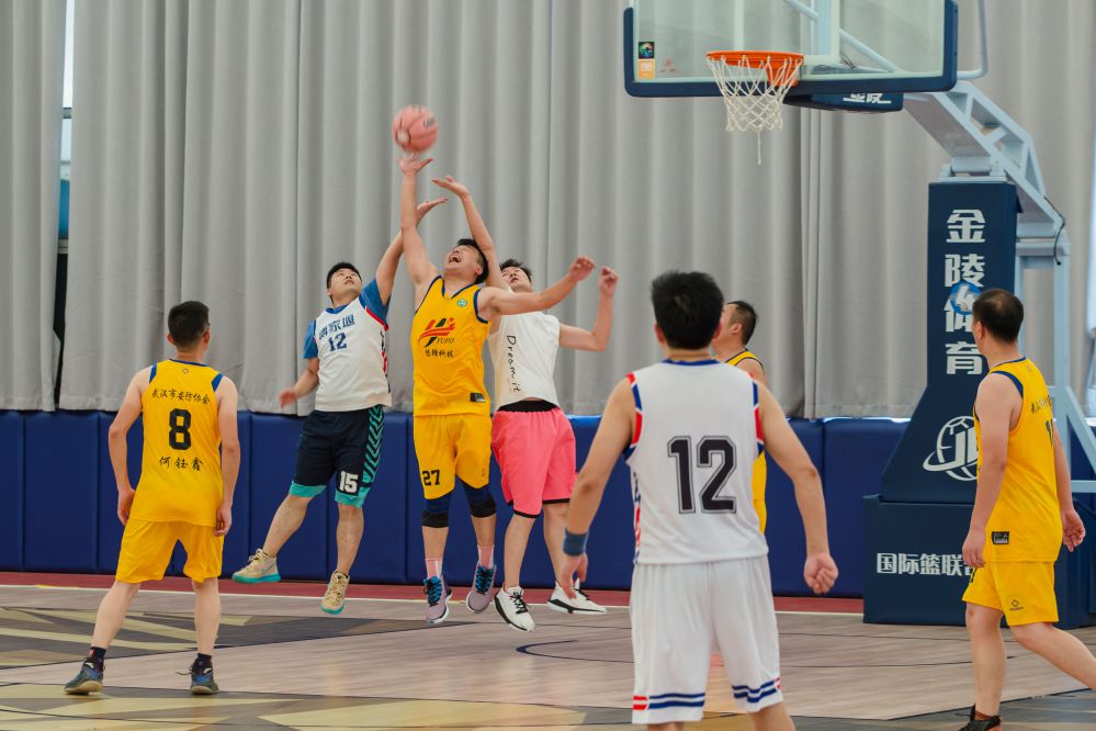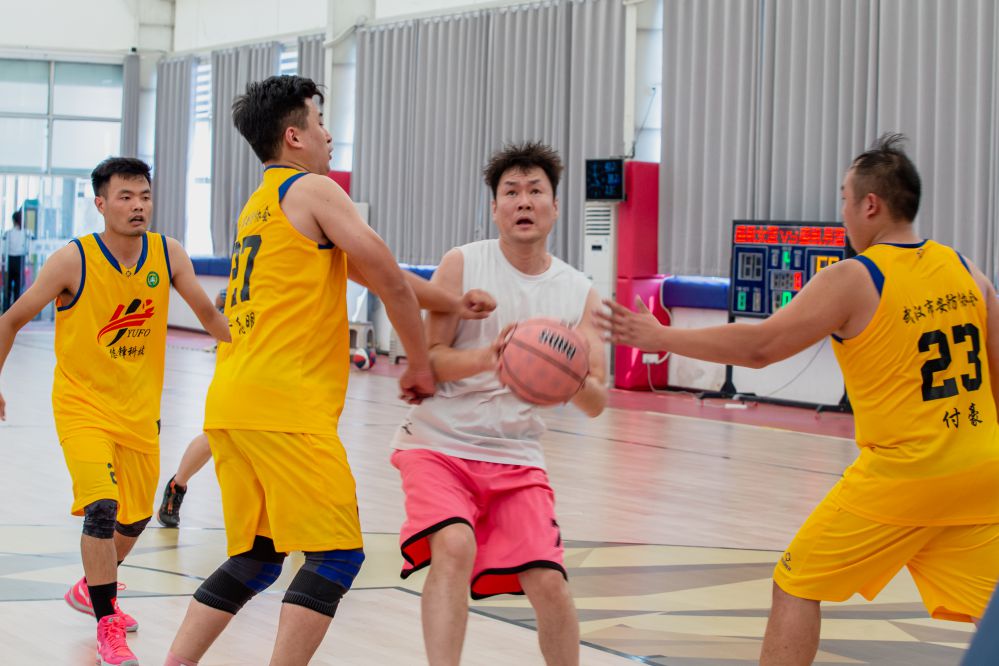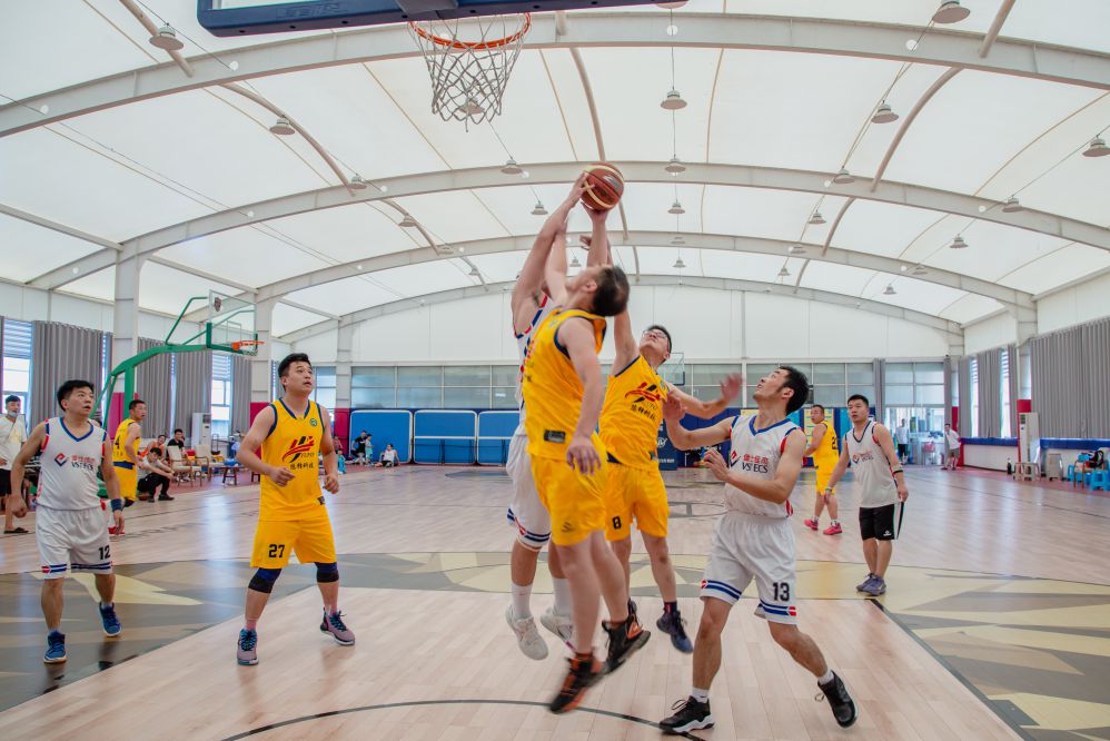 高溫酷暑,也阻擋不了大家參與的熱情。隨著裁判員的一聲哨響,比賽正式拉開帷幕,身著黃色球衣的“悠鋒科技”隊(duì)從一上場(chǎng)便表現(xiàn)出了較強(qiáng)的氣勢(shì),他們憑借著隊(duì)友間的默契在場(chǎng)上發(fā)起一輪輪攻勢(shì),運(yùn)球、傳球、投籃、防守多點(diǎn)開花氣勢(shì)如虹。身著白色球衣的偉仕佳杰隊(duì)也毫不示弱,他們很快便根據(jù)場(chǎng)上形勢(shì)調(diào)整了技戰(zhàn)術(shù),通過加強(qiáng)拼搶,增強(qiáng)傳導(dǎo),緊咬比分,步步逼近。