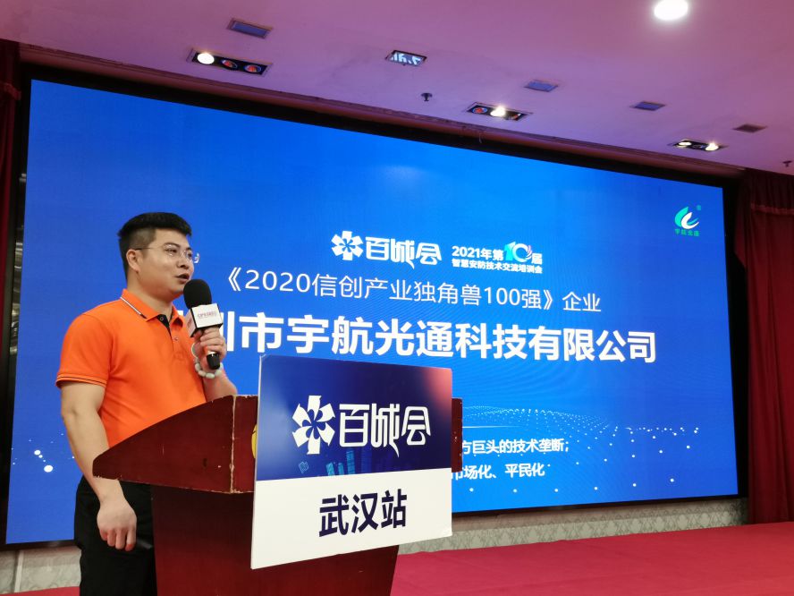 10月18日,由深圳市安全防范行業協會、CPSE安博會、CPS中安網主辦,武漢市安全技術防范行業協會協辦,湖北省安全技術防范行業協會支持,深圳市宇航光通科技有限公司冠名的2021第十屆智慧安防技術交流培訓會(百城會)在武漢華天大酒店成功舉辦。武漢各安防企業代表200余人參與本次會議。