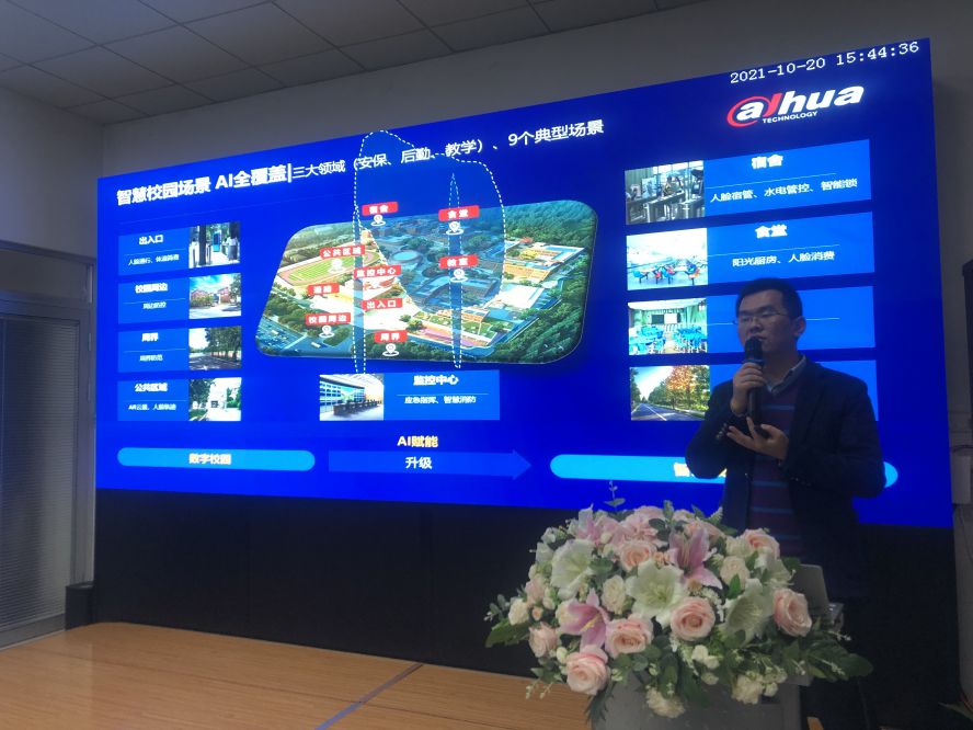 大華湖北企業(yè)業(yè)務(wù)部談學(xué)洪為大家介紹了教育行業(yè)、醫(yī)療行業(yè)的解決方案。大華針對中小學(xué)校園特點,設(shè)計了可靠地安防系統(tǒng)綜合解決方案,以音視頻端到端產(chǎn)品和方案為系統(tǒng)主體,以針對教育行業(yè)推出的安防綜合管理平臺為核心,集成報警、門禁、卡口,校車車載等各個安防子系統(tǒng),充分應(yīng)用智能化、云技術(shù)、4K超清等創(chuàng)新技術(shù),形成一套完整的校園安防系統(tǒng)。而大華智慧教室解決方案聚焦課堂教學(xué)場景應(yīng)用,以教學(xué)業(yè)務(wù)為核心,基于AI智能識別、云計算、智語音、物聯(lián)網(wǎng)、音視頻結(jié)構(gòu)化、大數(shù)據(jù)挖掘等前沿技術(shù),通過各種前后端智能設(shè)備,實現(xiàn)課堂智能點名、師生行為分析、視頻資源管理、信息發(fā)布、互動教學(xué)、教室環(huán)控等功能應(yīng)用,打通考勤、錄播、巡課、教學(xué)、中控、文宣等系統(tǒng)壁壘,真正做到人工智能技術(shù)與課堂教學(xué)深度融合,全面促進教學(xué)方式的轉(zhuǎn)變與創(chuàng)新,及教育信息化應(yīng)用水平的提升。而此類方案應(yīng)用于成都玉林中學(xué)。