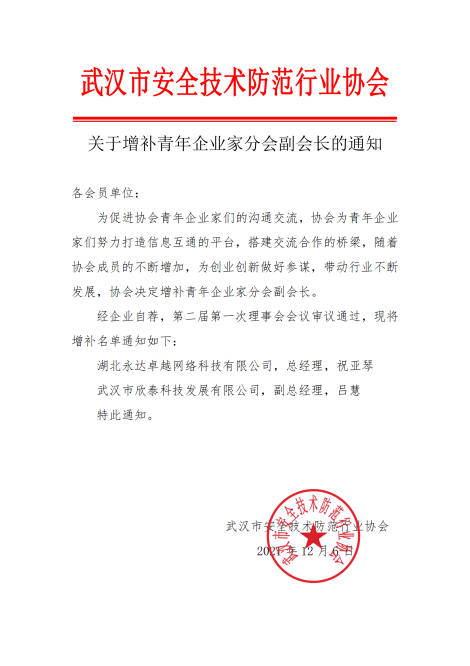 關(guān)于增補(bǔ)青年企業(yè)家分會(huì)副會(huì)長(zhǎng)的通知