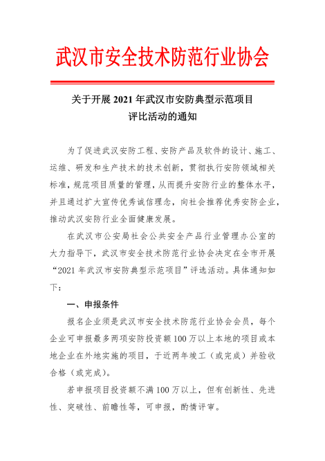 關于開展2021年武漢市安防典型示范項目評比活動的通知