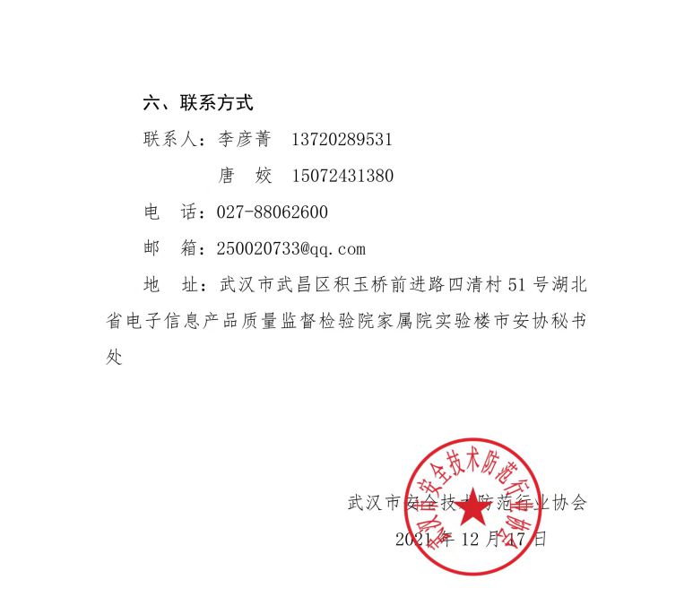 地 址:武漢市武昌區積玉橋前進路四清村51號湖北省電子信息產品質量監督檢驗院家屬院實驗樓市安協秘書處