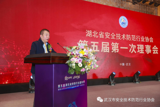? ? ? ? 2021年12月24日下午,由湖北省公安廳科技信息處指導,湖北省安全技術防范行業協會(以下簡稱:湖北省安防協會)主辦,武漢市安全技術防范行業協會、孝感市安全技術防范行業協會、襄陽市安全技術防范行業協會、黃岡市安全技術防范行業協會、荊門市公共安全技術防范行業協會、咸寧市保安行業協會支持,安品匯承辦的湖北省第五屆安防行業嘉年華暨湖北省安全技術防范行業協會第五屆第一次會員大會在武漢世茂希爾頓酒店隆重舉行召開。我會秘書長陳虎受邀參加會議。